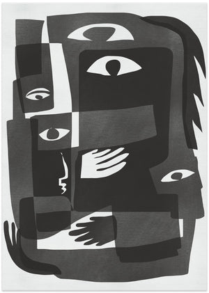 Monochrome Geometric Shapes and Stylized Eyes