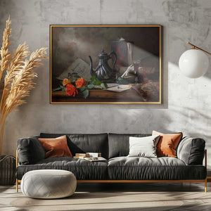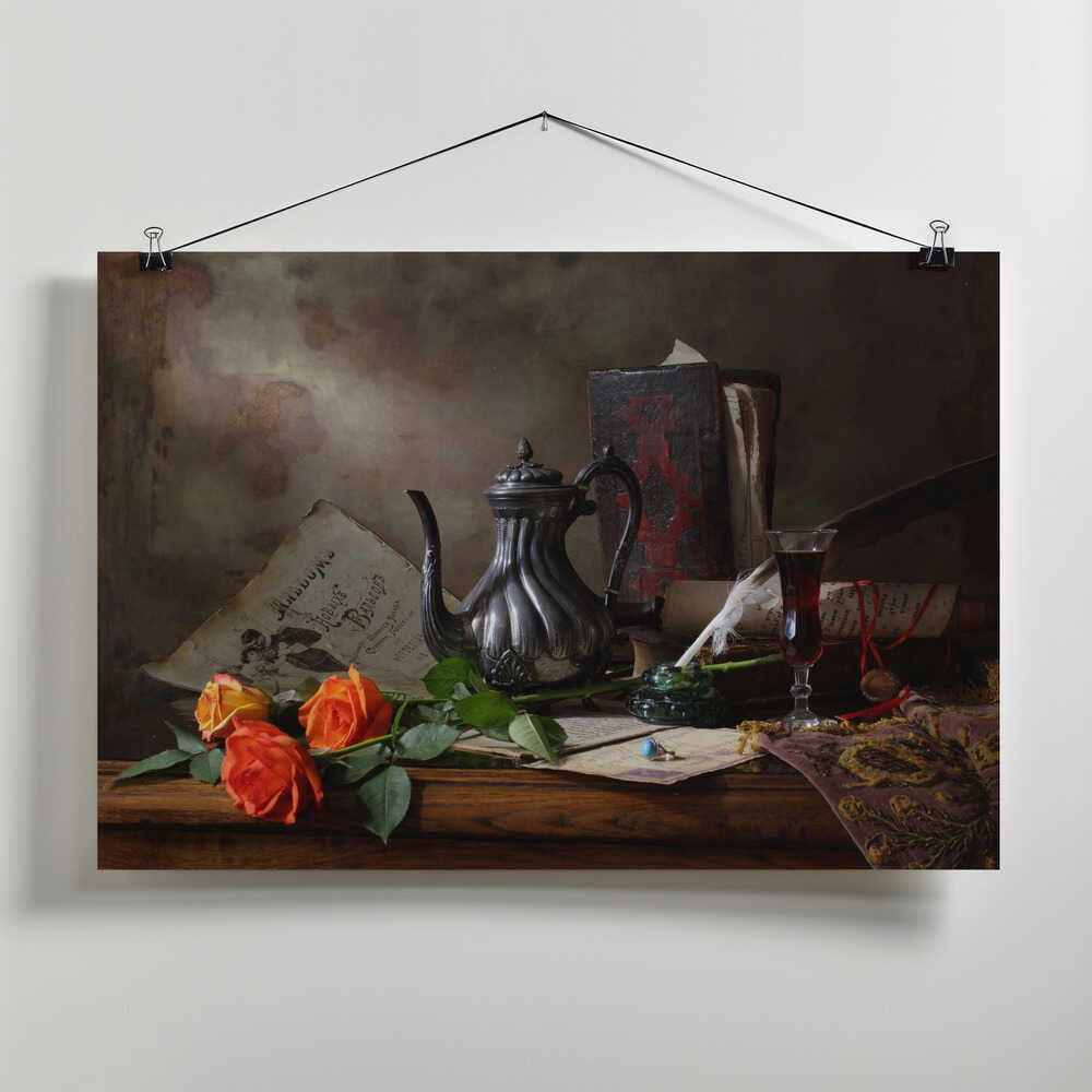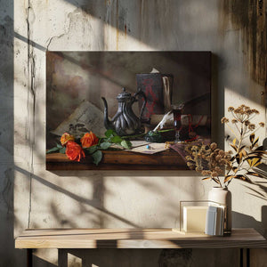 Still life with teapot and roses