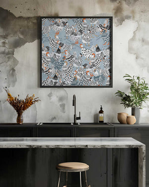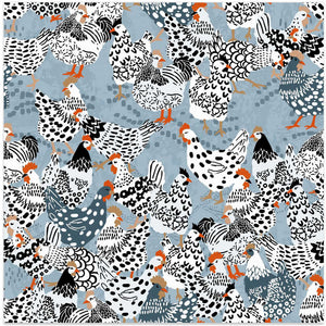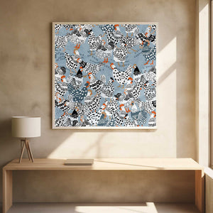 Blue chicken family pecking on the ground by Annick