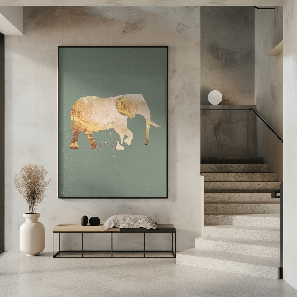 Sage Green Gold Elephants 2