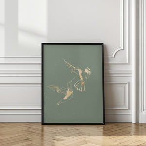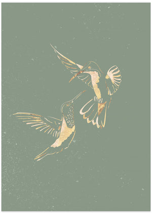 Sage Green Gold Hummingbirds by Sarah Manovski