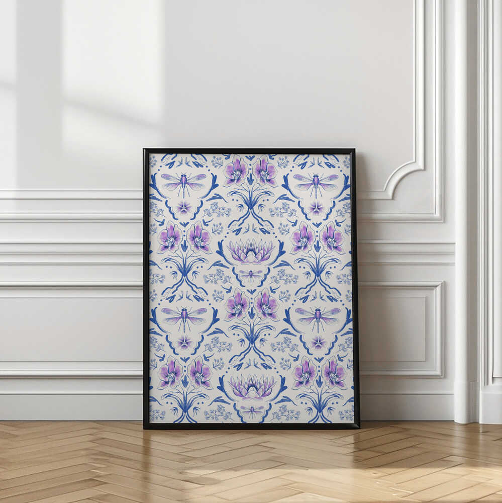 Bohemian Garden Pattern Blue and Purple by Anis Illustration