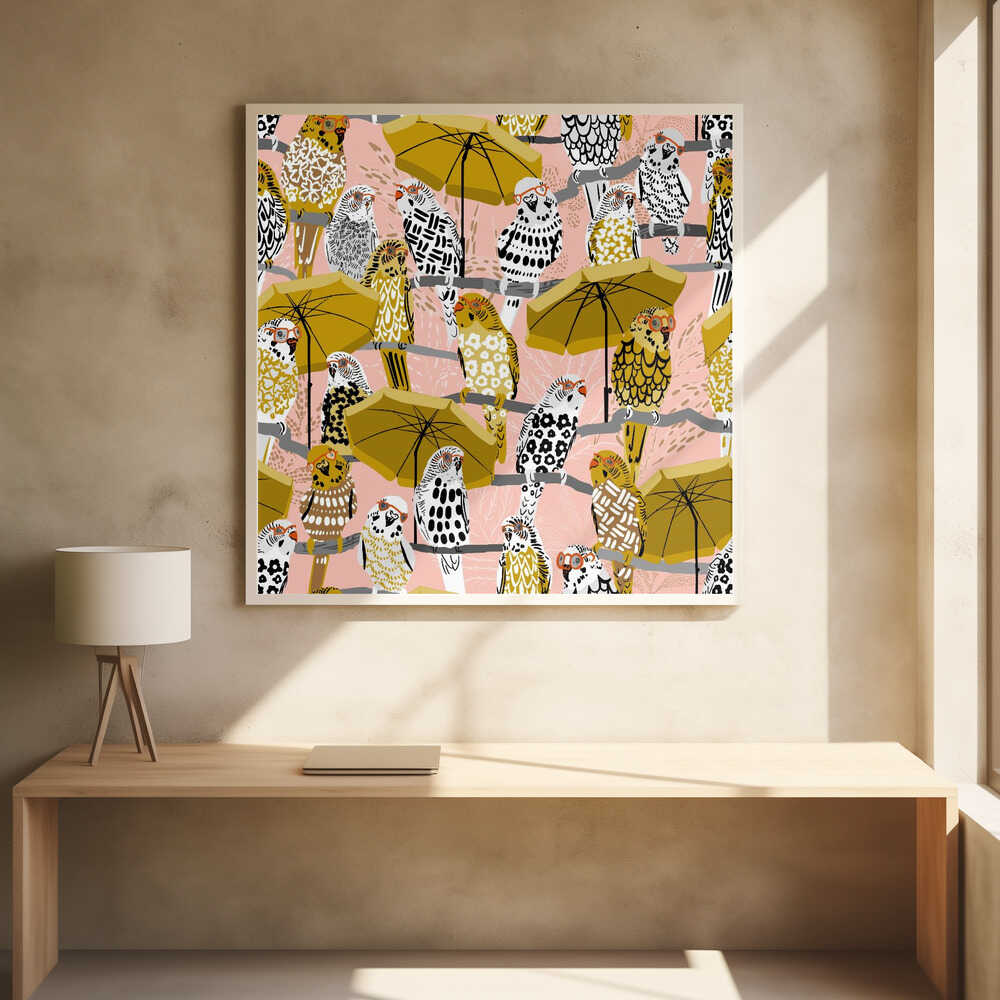budgie on vacation blush pink pattern by Annick