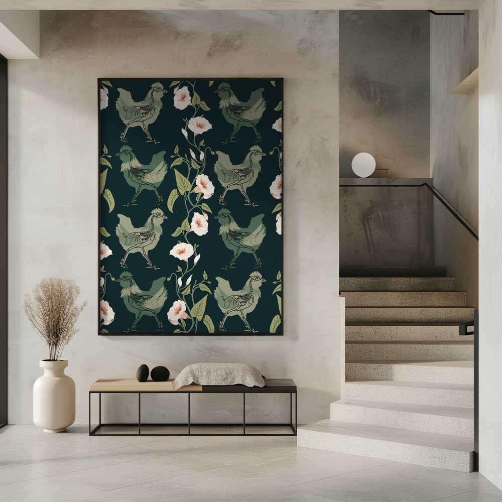 Gothic cottage chicken dark emerald pattern by Annick