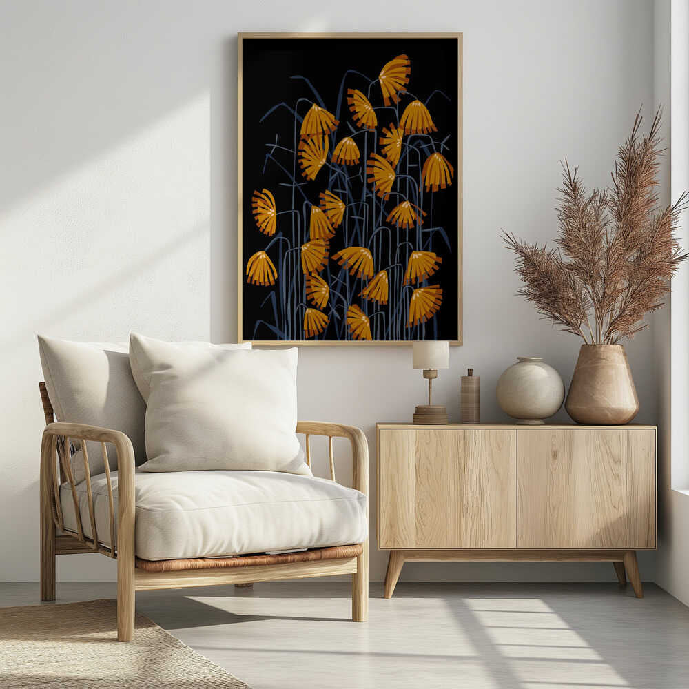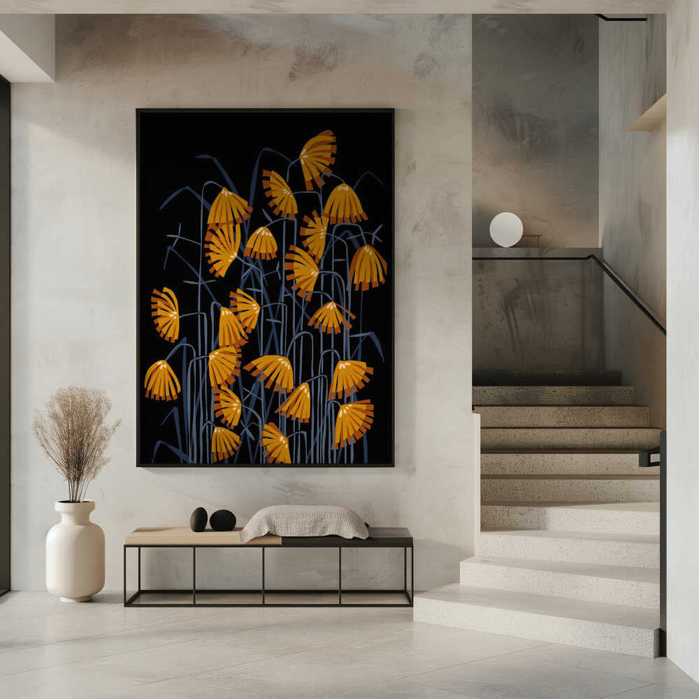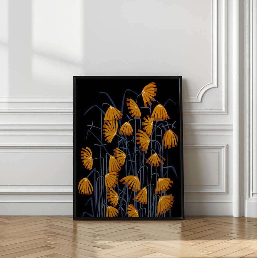 Linocut Flower Meadow Black by Annick