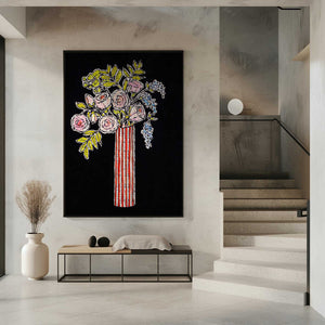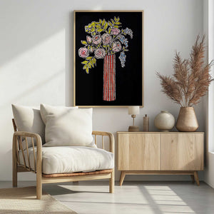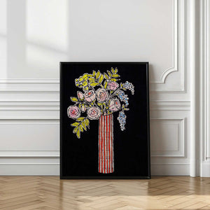 Rose still life, bouquet with slender vase