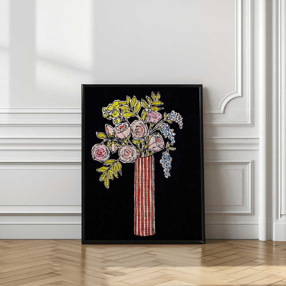 Rose still life, bouquet with slender vase by Annick