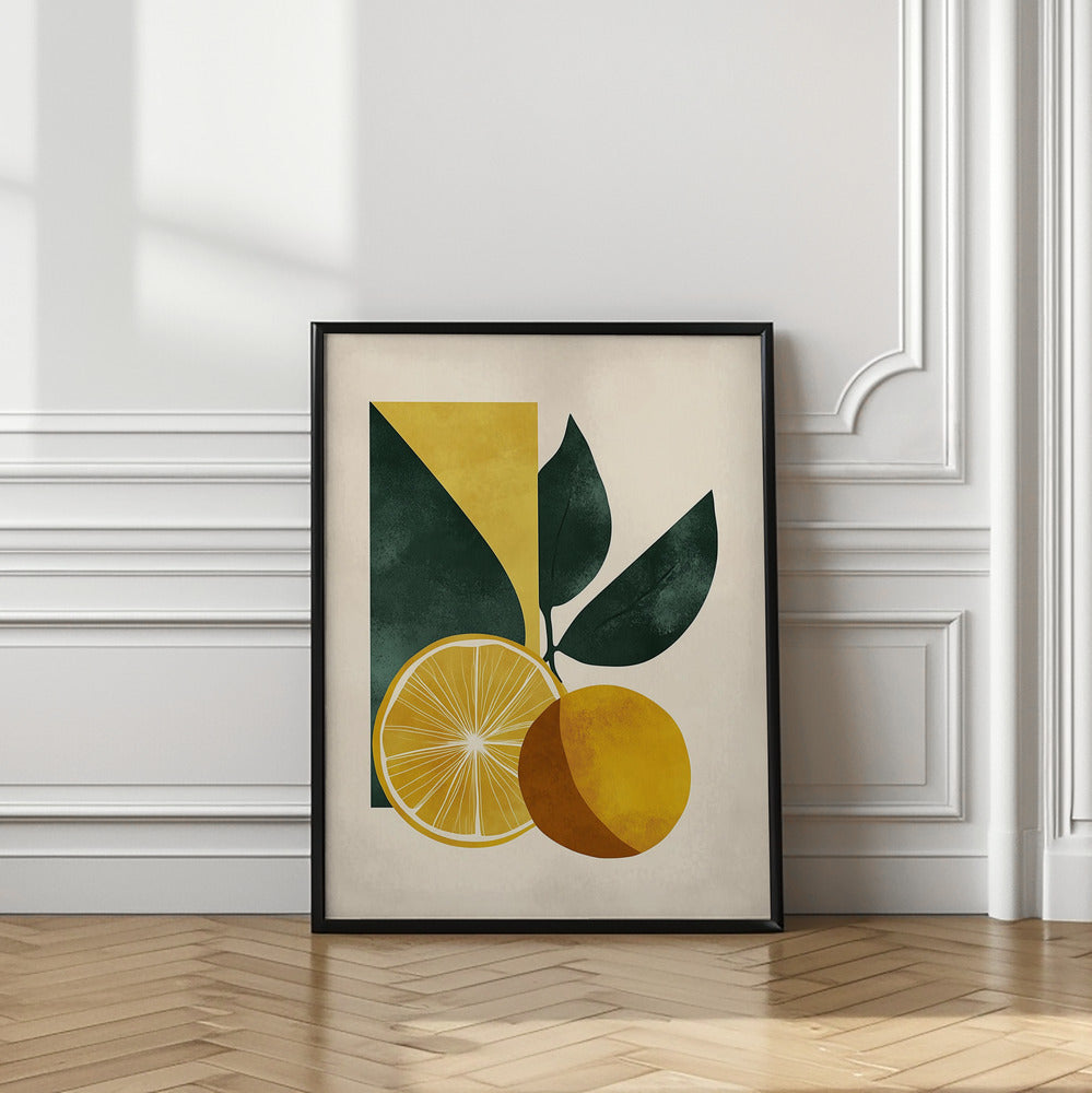 Yellow Lemon with Green Leaves Serenity by Annika Persson