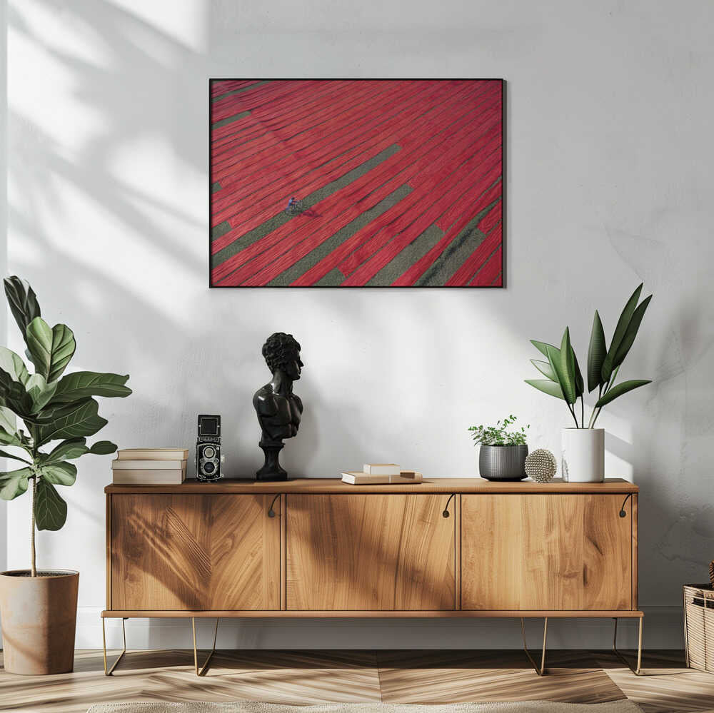 Bicyclist on the red fabrics