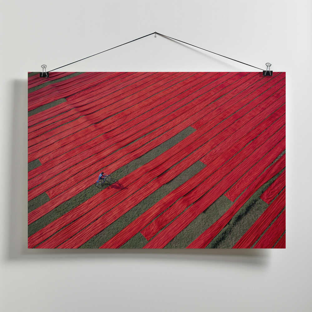 Bicyclist on the red fabrics by Azim Khan Ronnie