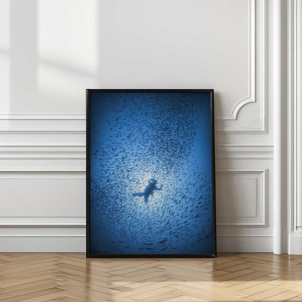 Diver and shoal of fish by Barathieu Gabriel