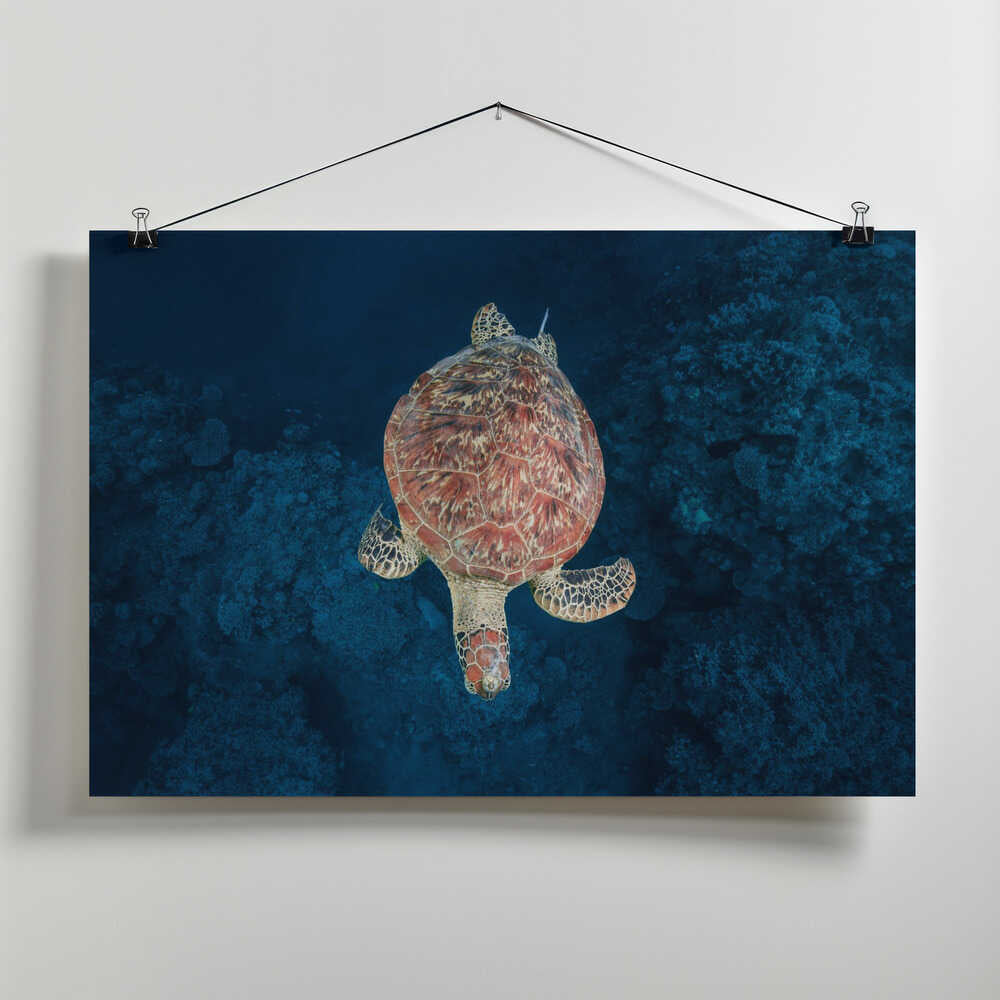 Green turtle on blue water by Barathieu Gabriel