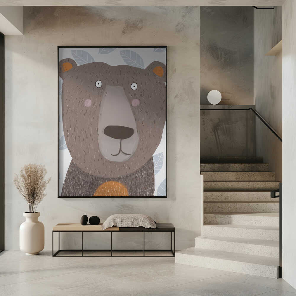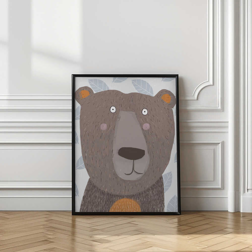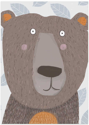 Cute Brown Bear with Grey Leaf Pattern by Artist Carla