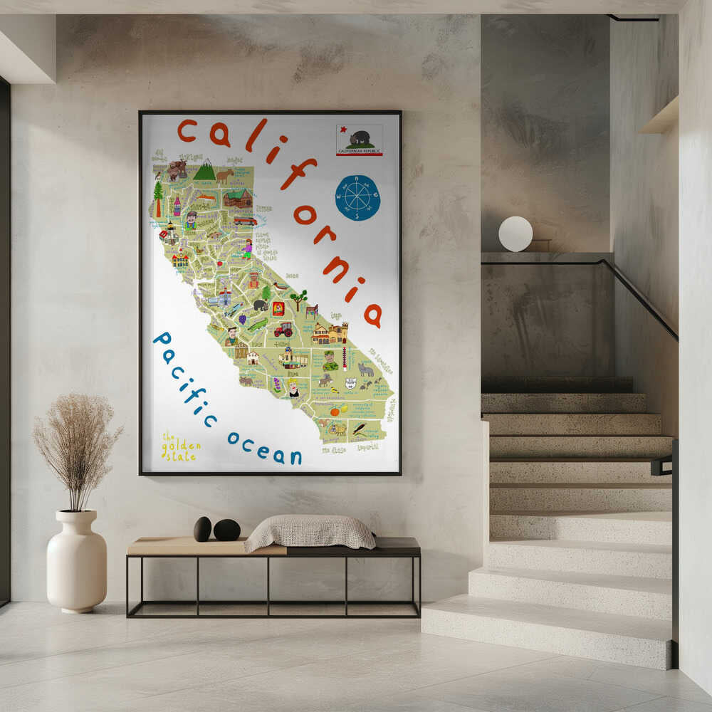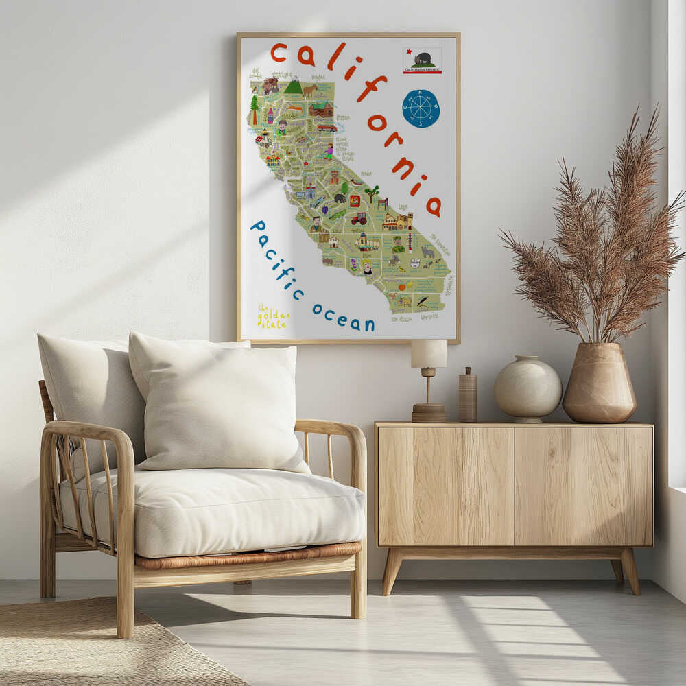 Illustrated Map of California by Artist Carla Daly by Carla Daly