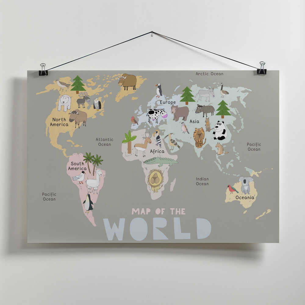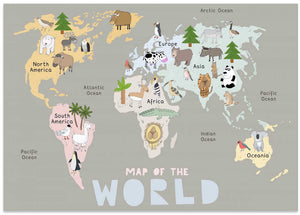 Map of the World with Cute Animals