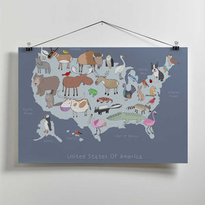 United States of America Dark Grey with Cute Animals by Artist Carla Daly