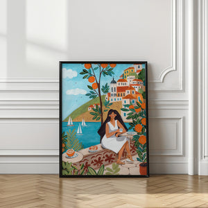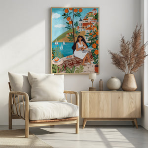 Travel poster woman in Mediterranean coast by Caroline Bonne Müller
