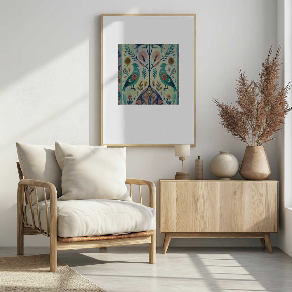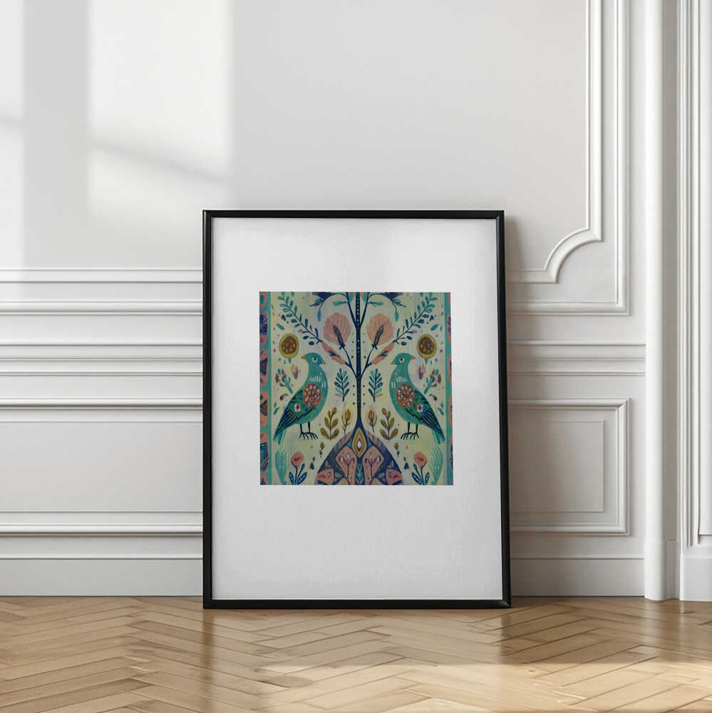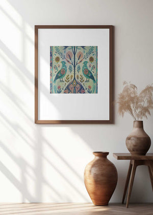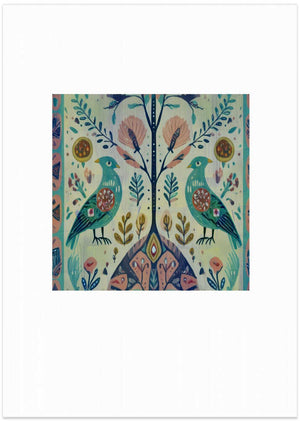 Folk Art Print Folklore Bird Floral Tapestry 1