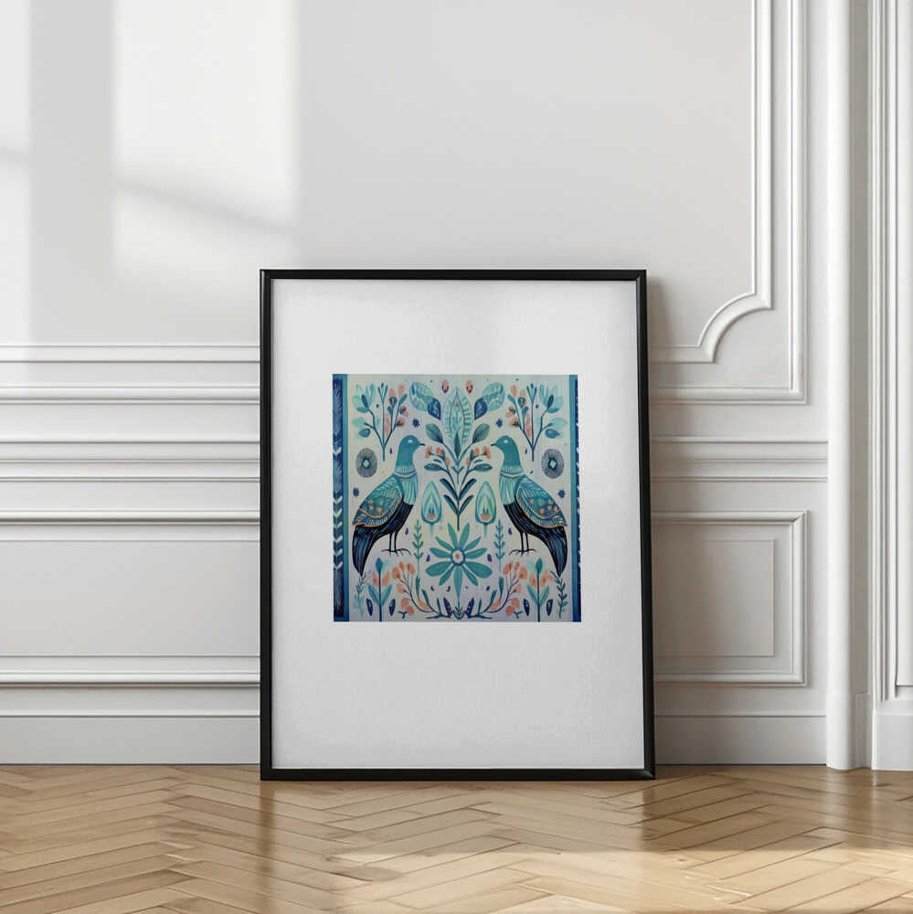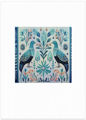 Folk Art Print Folklore Bird Floral Tapestry 3