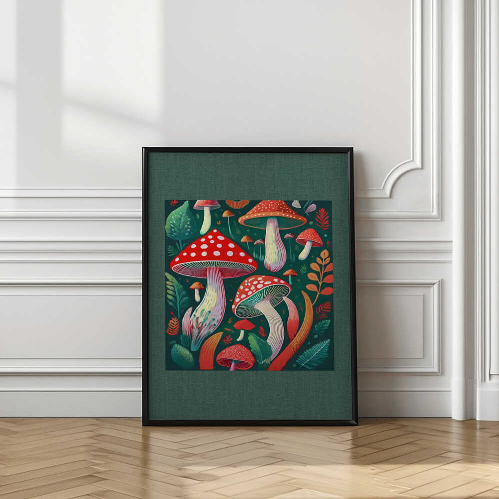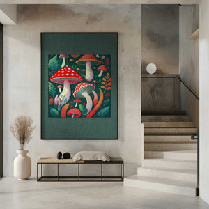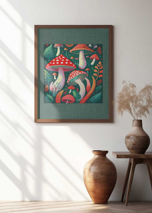 Folk Art Print : Mystic Mushrooms 2