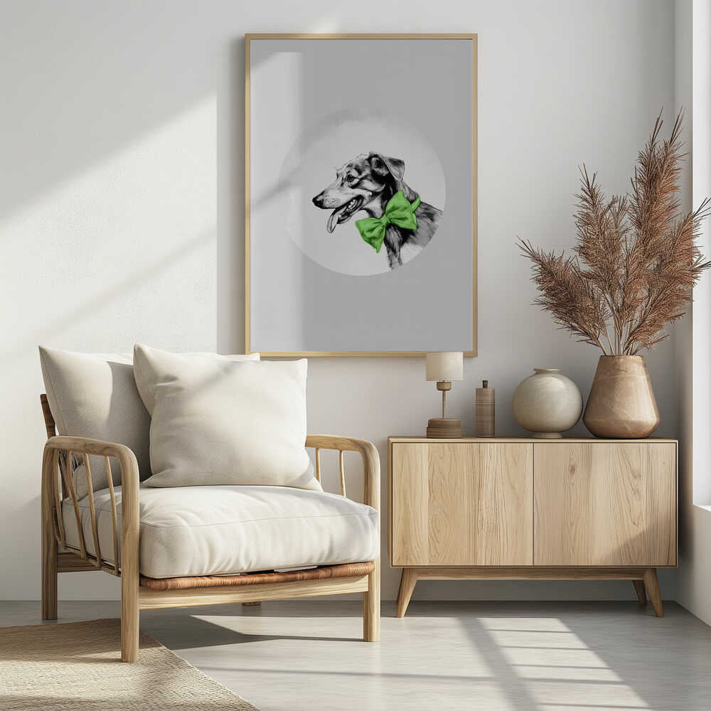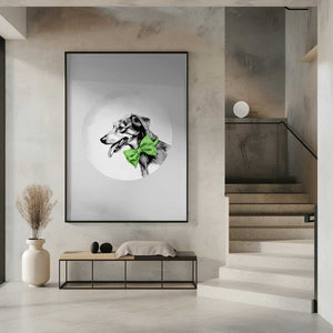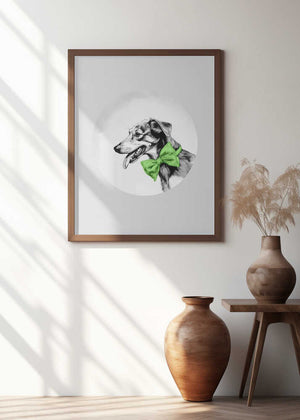 Winter Scenes: Holiday Dog With Green Neck Bow Tie 1 by casa cartissi