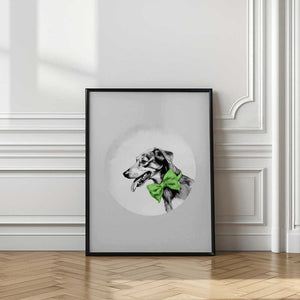 Winter Scenes: Holiday Dog With Green Neck Bow Tie 1
