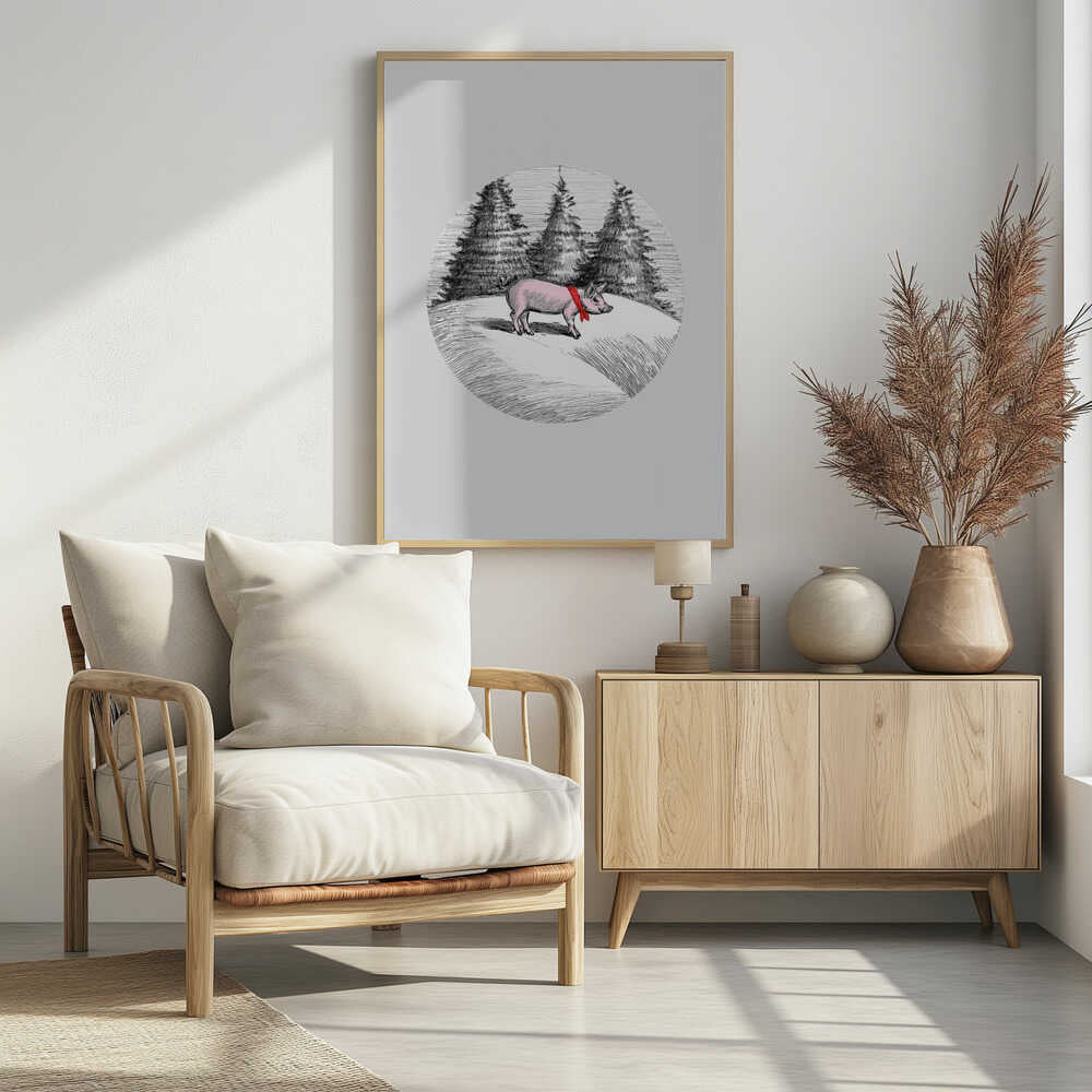 Winter Scenes: Holiday Pink Pig With Red Neck Bow Tie 1 by casa cartissi