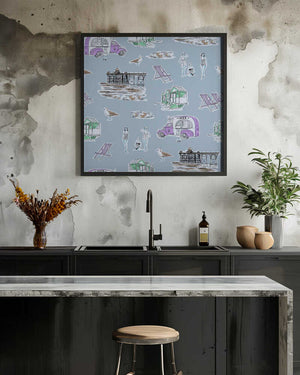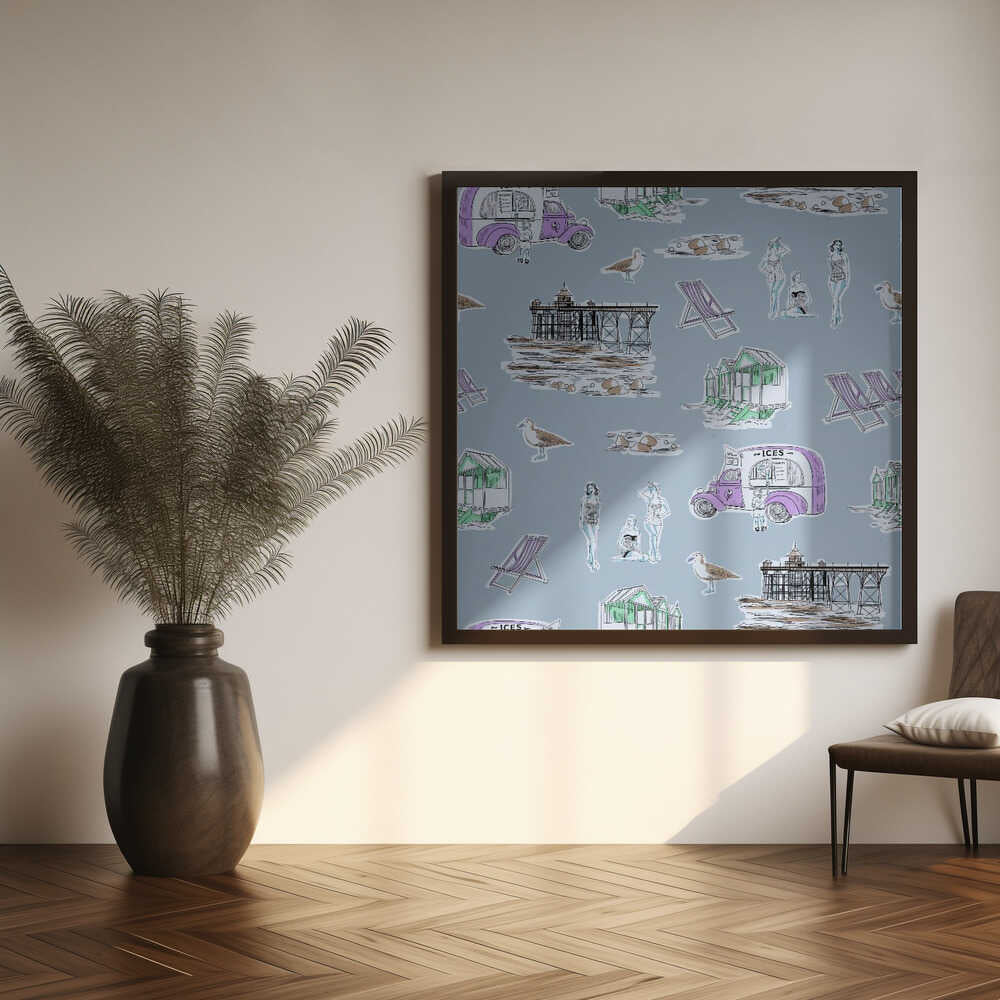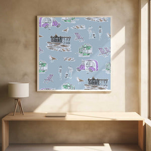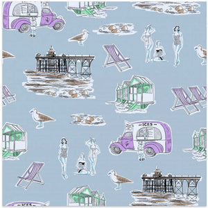 Retro Beach Bathers Toile blue by Charlotte Trudgett