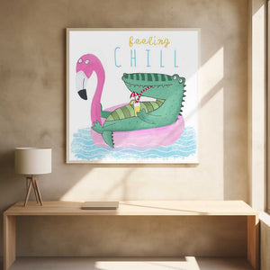 Felling Chill Funny Crocodile on a Flamingo Float by Carla Daly