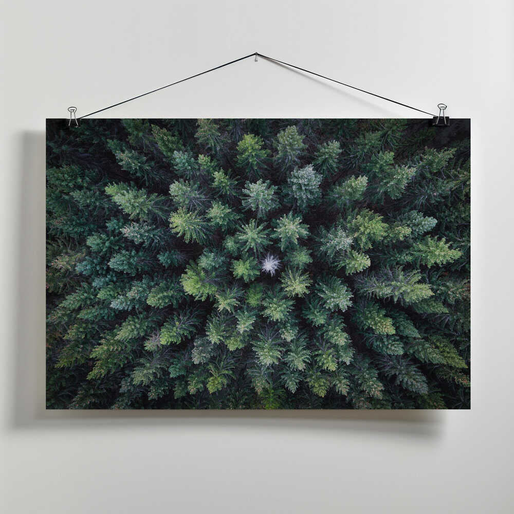 Dead tree surrounded by alive trees, drone photo. by Christian Lindsten