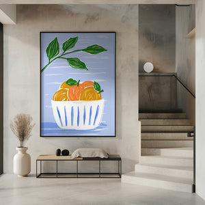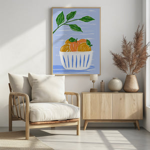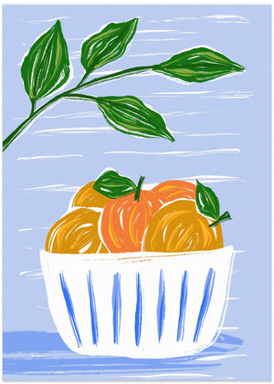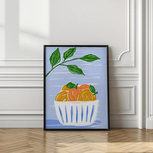 Oranges And Leaves In A White Bowl by Martina