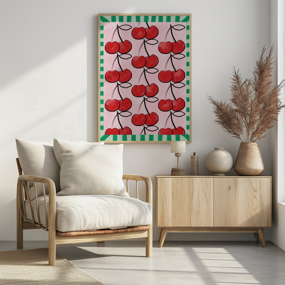 Red Cherries on a Pink