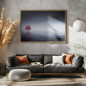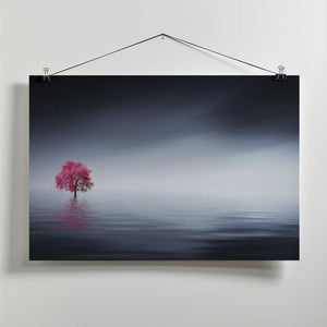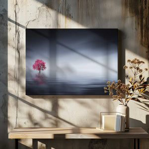 Pink tree at lake by Bess Hamiti