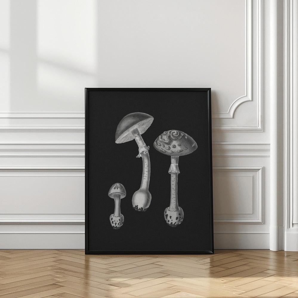 Amanita Muscaria Black Backgound BW by John Stephenson and James Morss Churchill