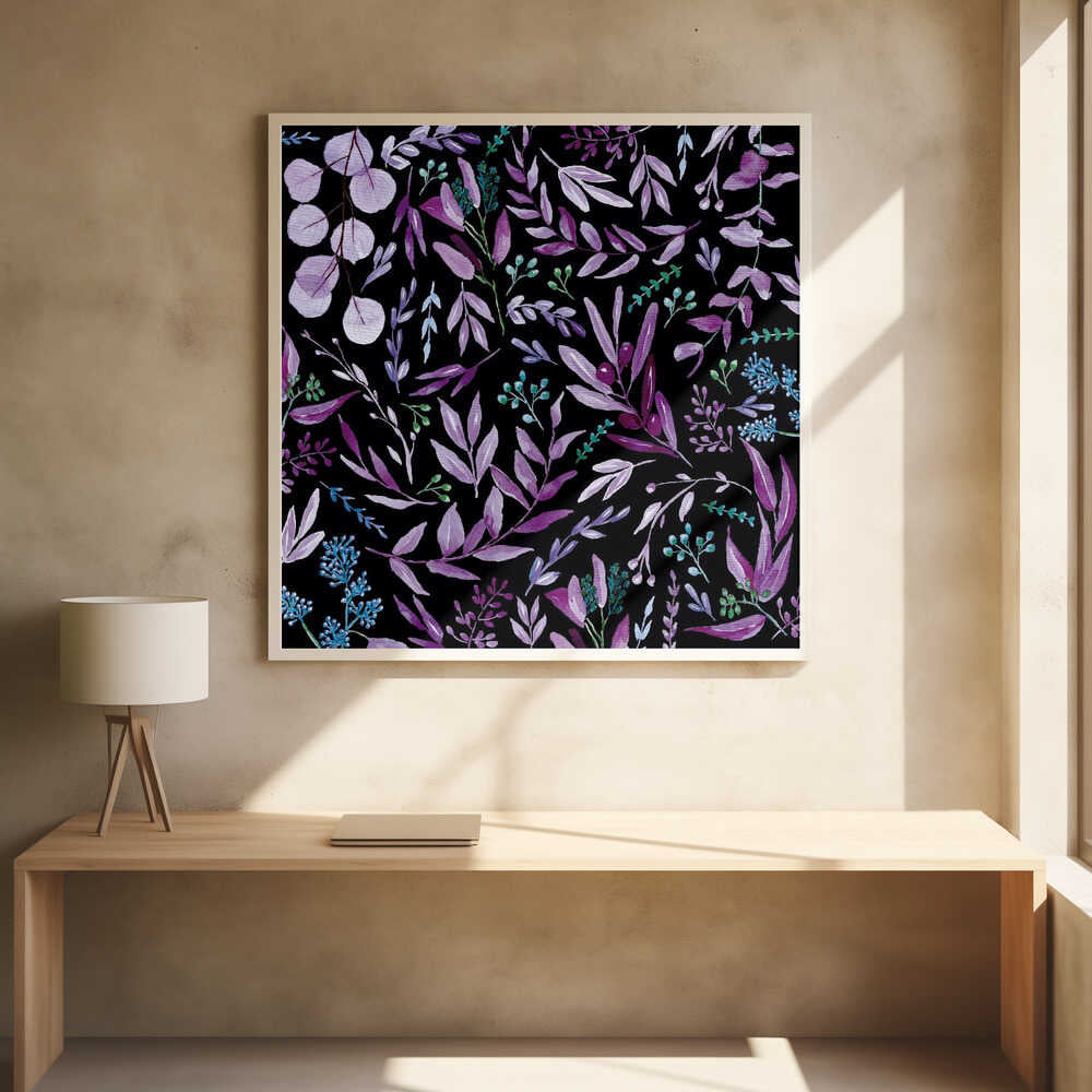 Eucalyptus Leaves Pattern Dark Purple