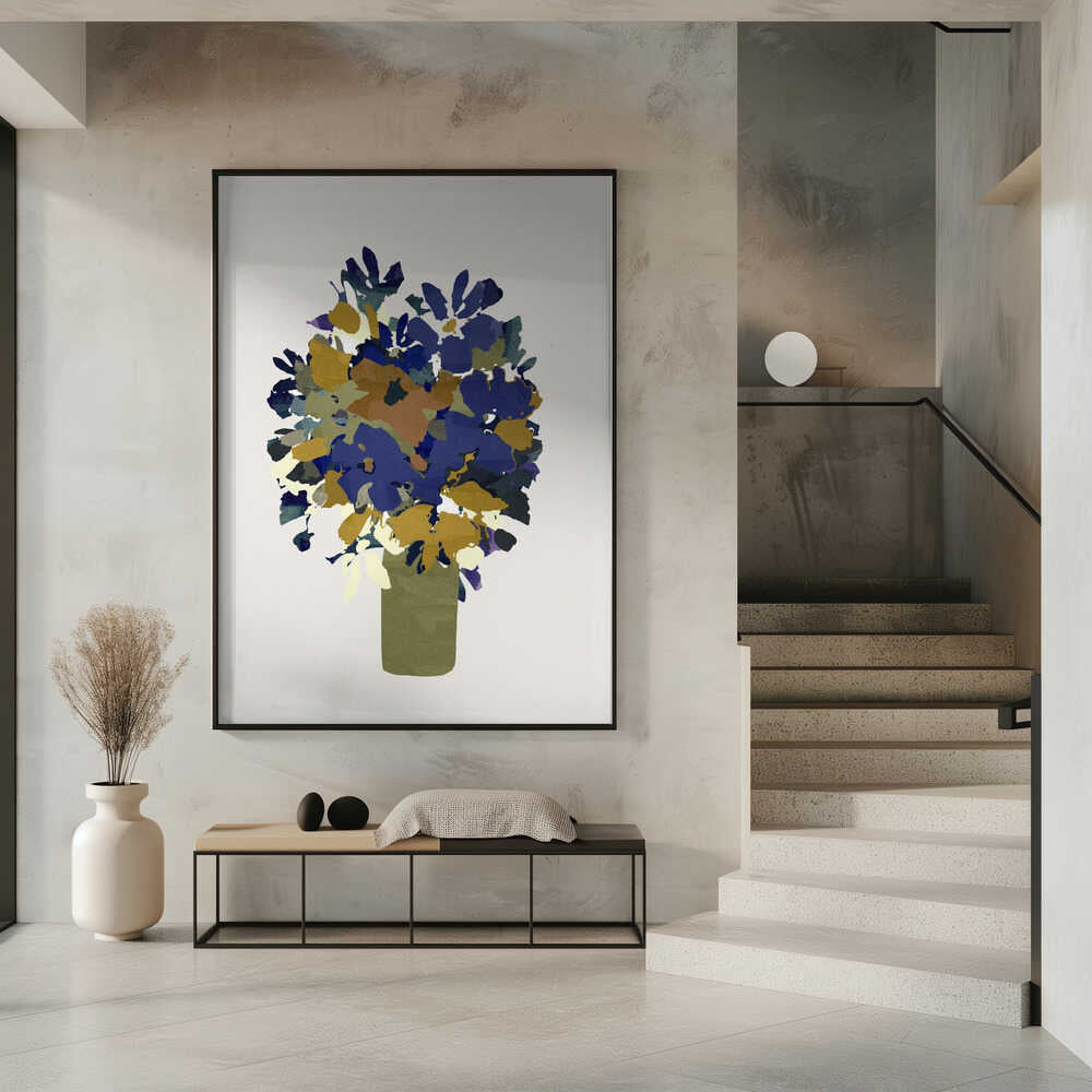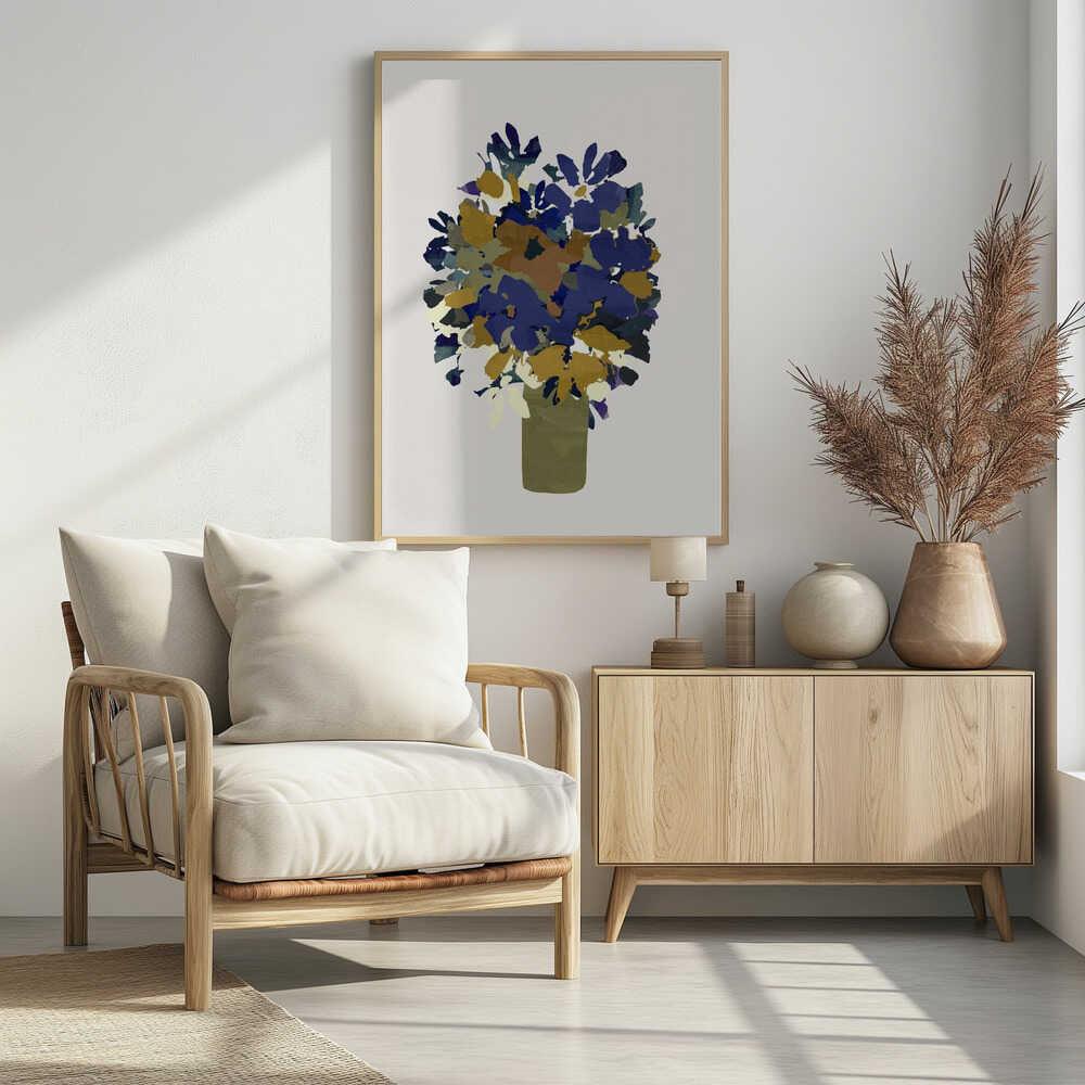 Blue and Brown Flowers In Vase