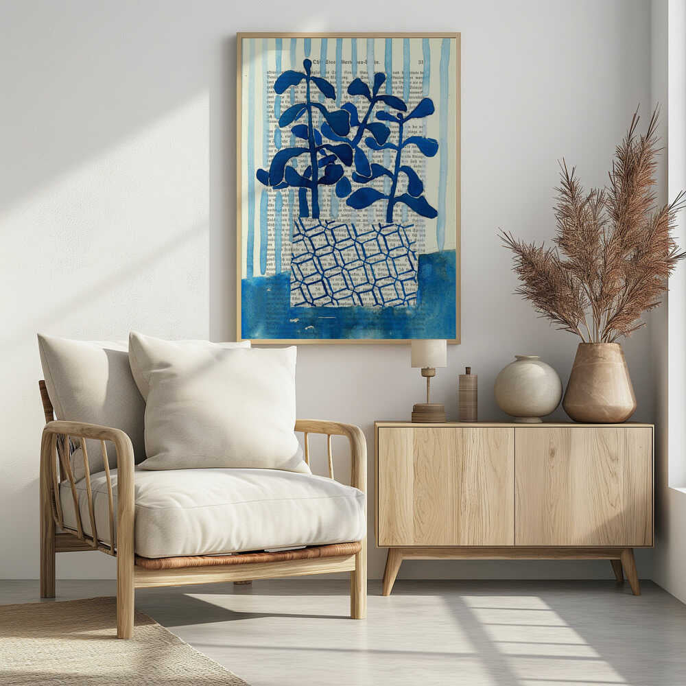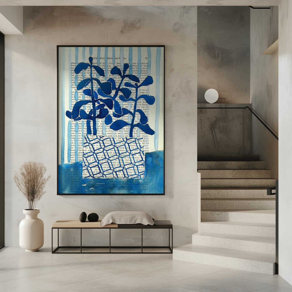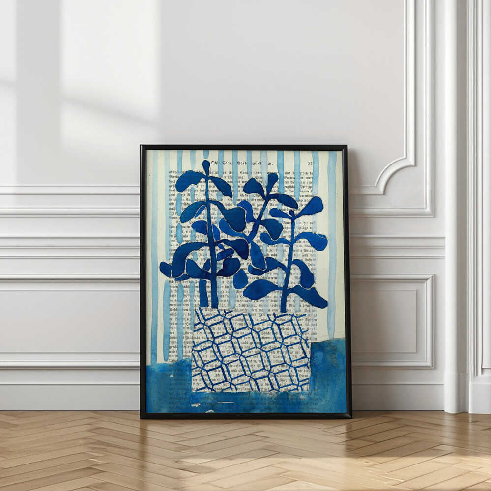 Denim blue patterned vase watercolor by Annick