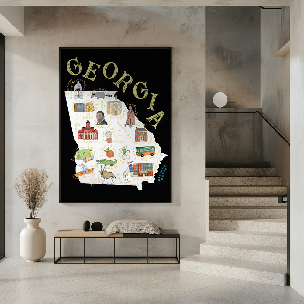 Illustrated Map of Georgia State by Artist Carla Daly by Carla Daly