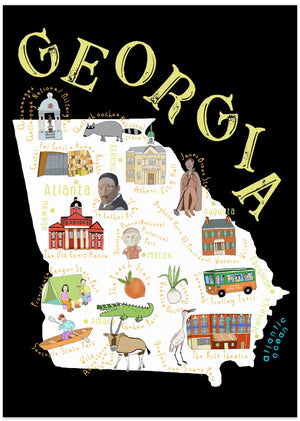 Illustrated Map of Georgia State by Artist Carla Daly
