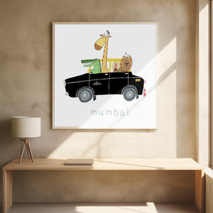Jungle Animals take a Ride in the Famous Mumbai Taxi by Carla Daly