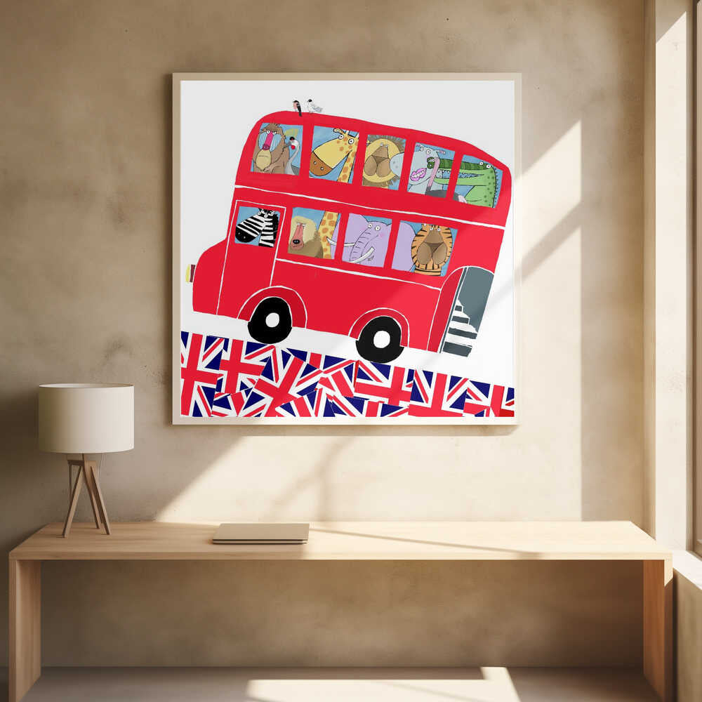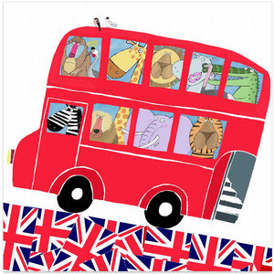 London Bus Full of Jungle Animals with UK Flag Design by Carla Daly