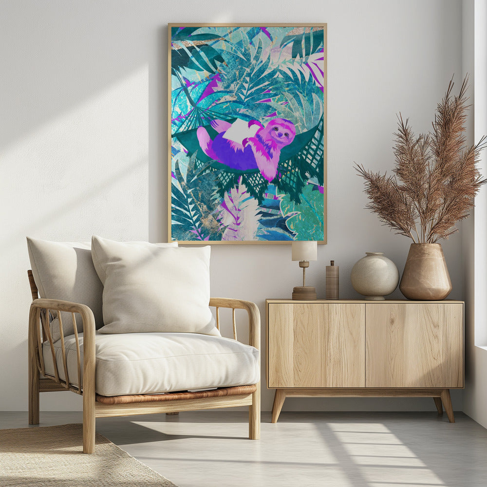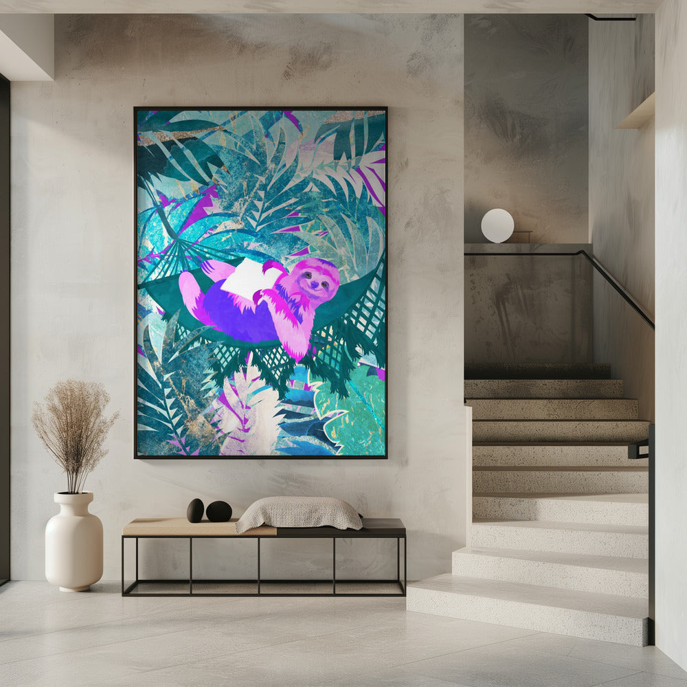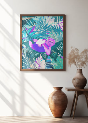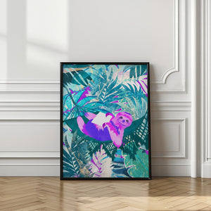 Pink and Green Neon Sloth in Hammock by Sarah Manovski