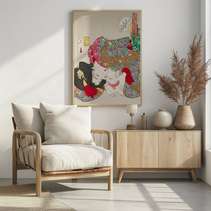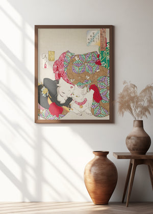 Woman With Pet Kansei Era (1888) By Tsukioka Yoshitoshi by Tsukioka Yoshitoshi
