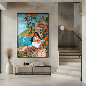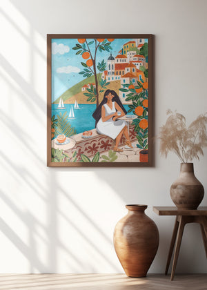 Travel poster woman in Mediterranean coast by Caroline Bonne Müller