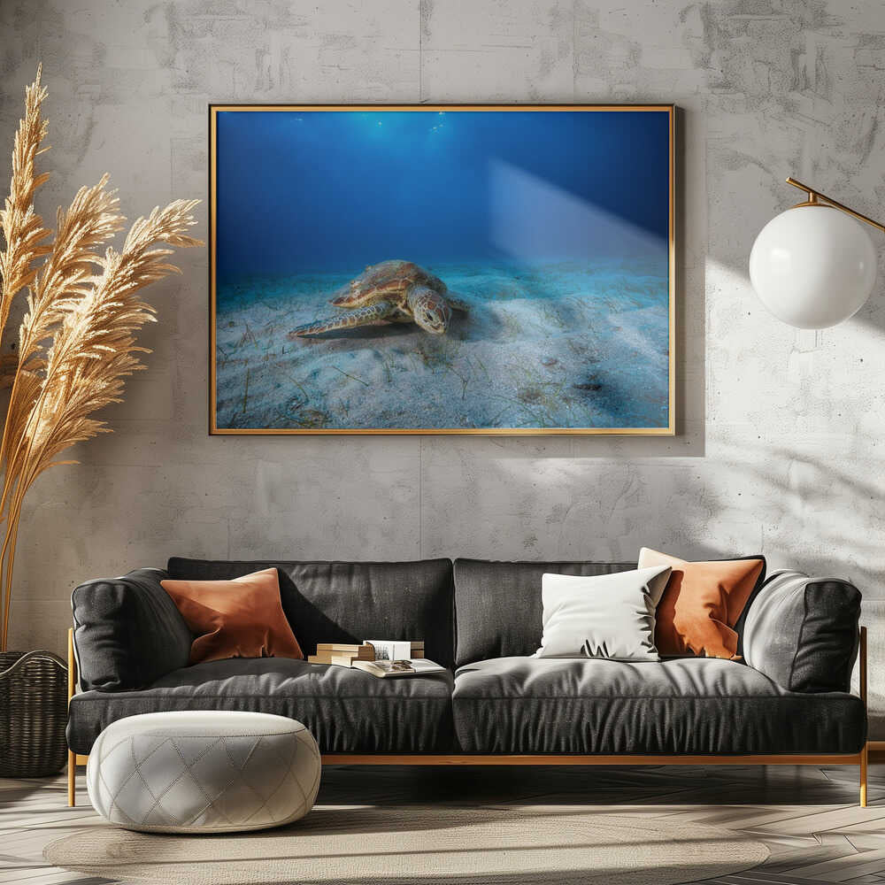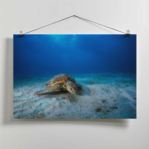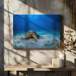 Green turtle in the blue by Barathieu Gabriel