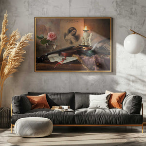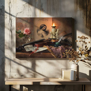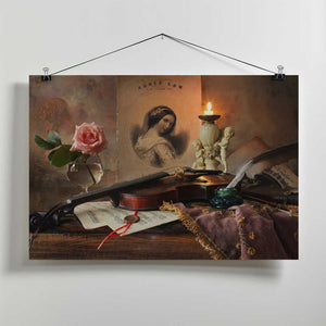 Still life with violin and rose