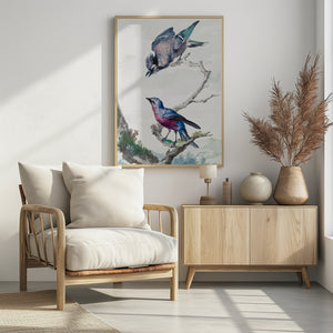 Two Birds a Blue Jay and a Purple Breasted Cotinga by Aert Schouman