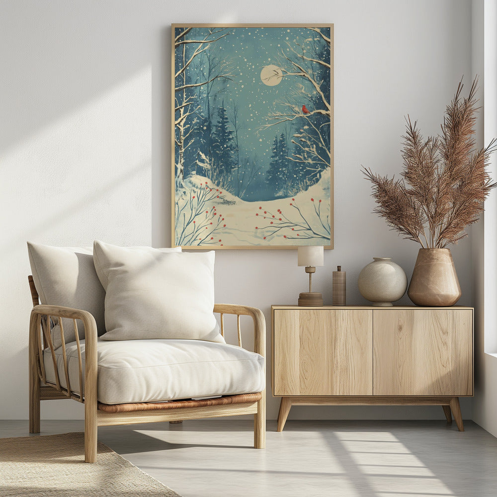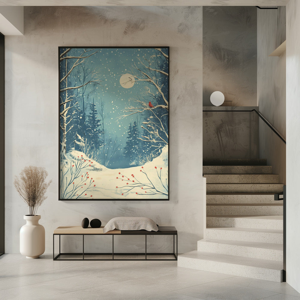 Red Bird in Snowy Forest by Pictufy Studio