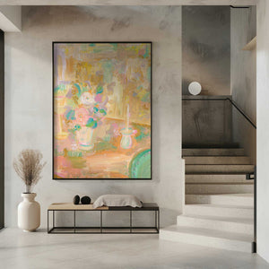 Impressionist Painting of Flowers and Candle