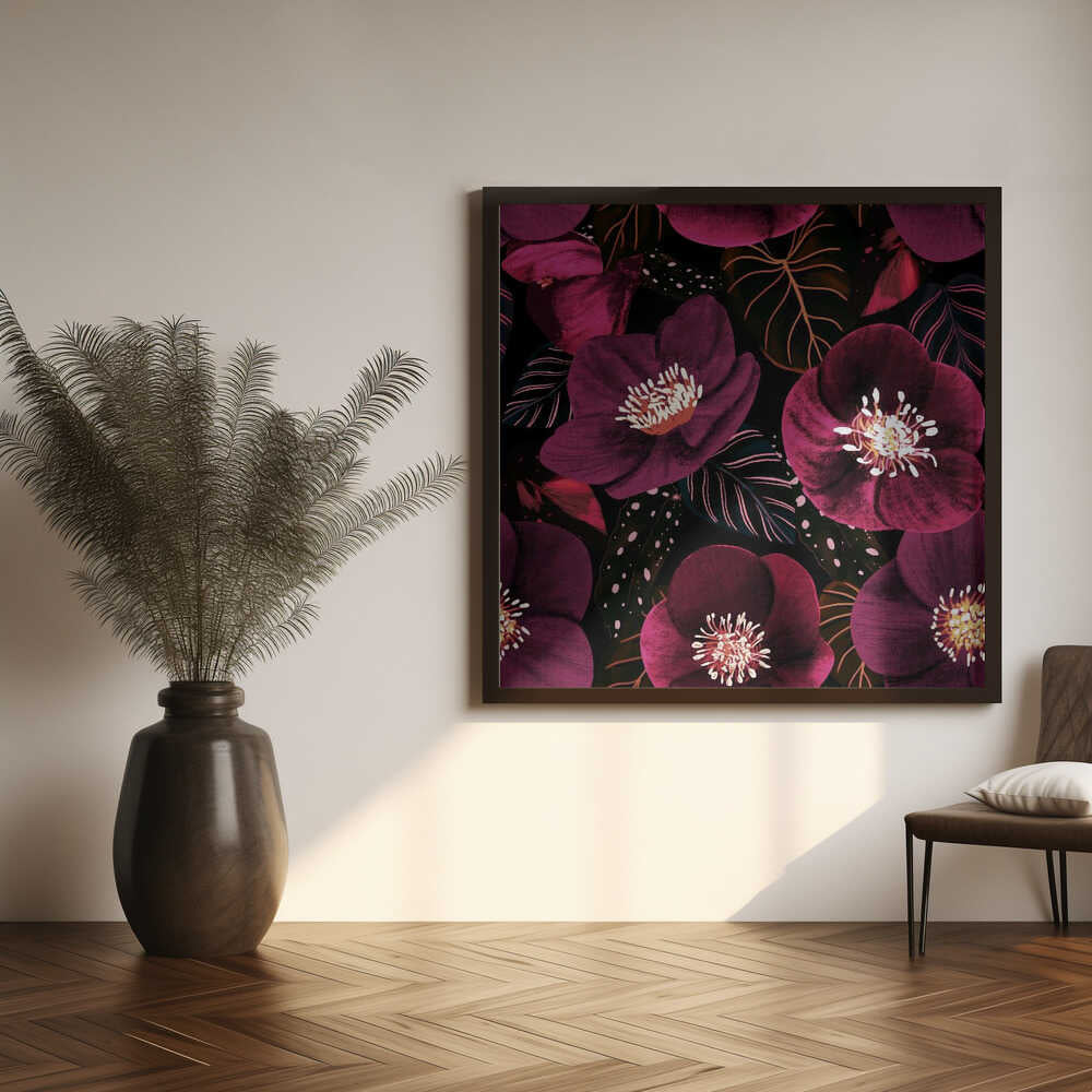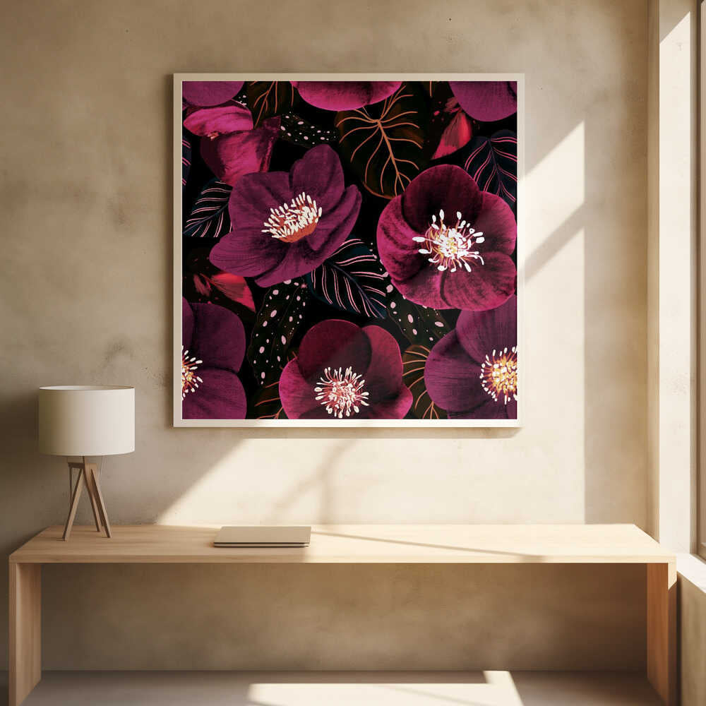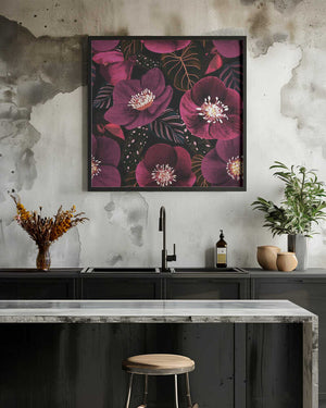 Midnight Dark Pink Flowers by Anis Illustration